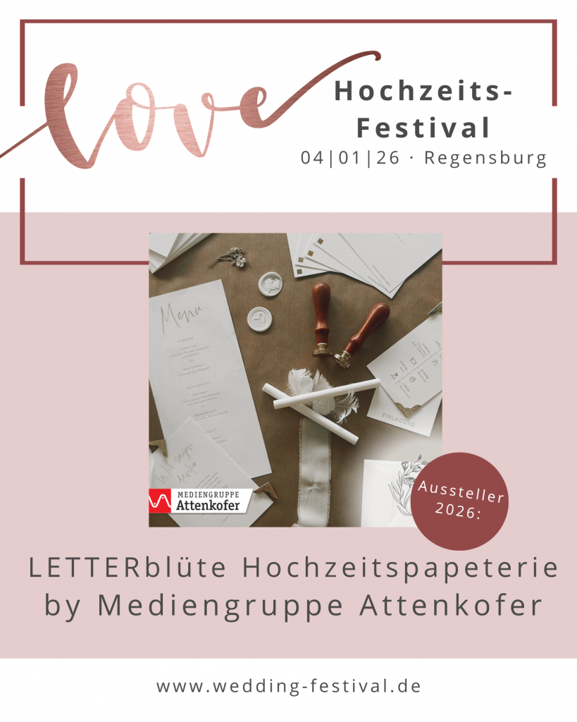 Rund 50 kreative und hochprofessionelle Unternehmen aus ganz Ost- & Oberbayern werden an diesem Hochzeits-Event in der Domstadt teilnehmen. Somit wird die „love. Regensburg“ – nach der erfolgreichen Premieren-Veranstaltung im Jahr 2025 – erneut eine der größten Hochzeitsmessen Ostbayerns!